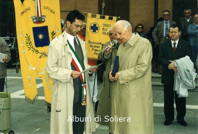 COMMEMORAZIONE DEL GIORNO DELLA LIBERAZIONE, GRUPPO DI PERSONE PER CONSEGNA DI TARGHE, SINDACO ENRICO LEVIZZANI, ARGIMIRO ARLETTI, MARIO BISI
