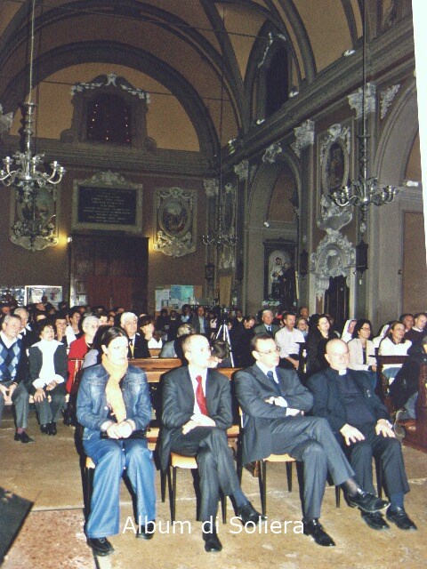 CHIESA SAN GIOVANNI, INTERNO, CONVEGNO "SAN MICHELE MCVI", DONNE E UOMINI SEDUTI, IN PRIMA FILA SI RICONOSCONO IL SINDACO DAVIDE BARUFFI E IL PRETE, PARROCO DON ANTONIO MANFREDINI