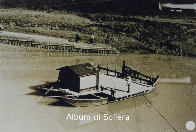 FIUME SECCHIA, PONTE BASSO, TRAGHETTO DEL SIG. DALMARI, DUE PERSONE IN BICICLETTA