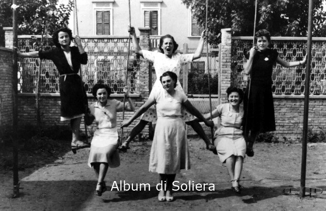 GRUPPO DI SEI DONNE SULLE ALTALENE ALLA FESTA DELL'UNITA', DA SINISTRA CHIOSSI IELIA, SGARBI CARLA, DOTTI CARMEN, VACCARI ALFA, GATTI MIMMA