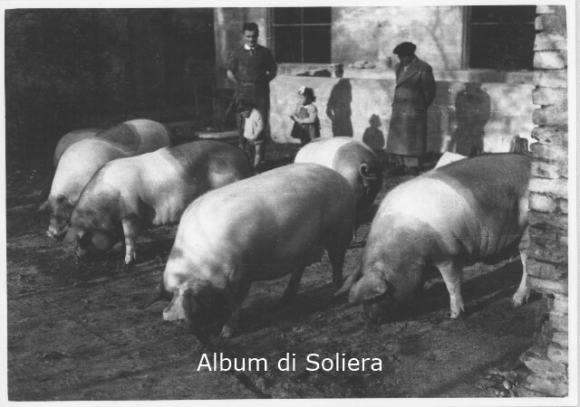MAIALI, COPPIA DI UOMINI E BAMBINI SULLO SFONDO