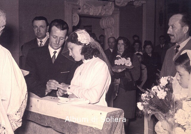 MATRIMONIO IN CHIESA, COPPIA DI SPOSI (DONNA CON VELO ), PRETE (CELEBRANTE), UOMINI E DONNE, BAMBINA CON MAZZO DI FIORI