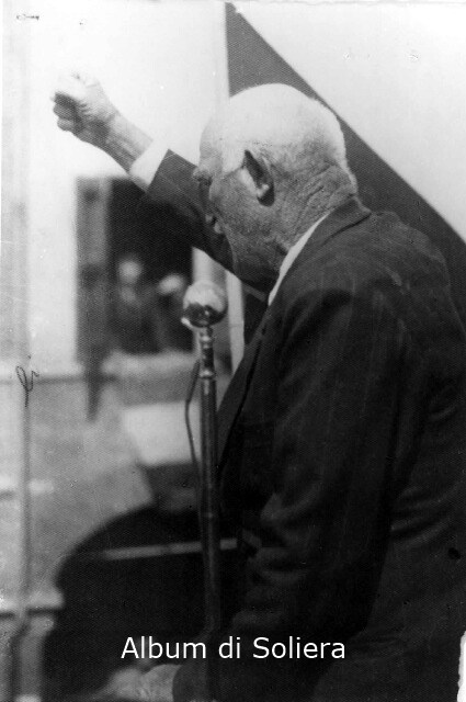 PIAZZA FRATELLI SASSI, BALCONE DI CASA LUGLI, COMANDANTE PARTIGIANO GIUSEPPE?CHE TIENE IL DISCORSO PER LA LIBERAZIONE.