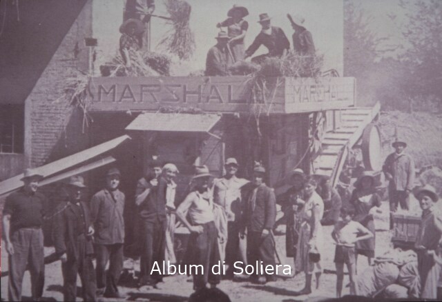 UOMINI E DONNE A FIANCO DI UNA TREBBIATRICE "MARSHALL"