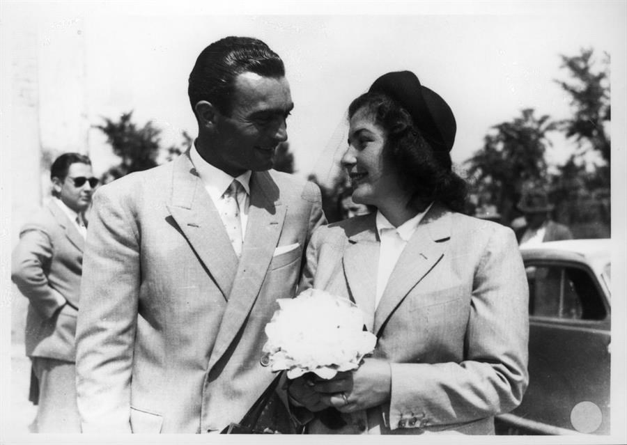 MATRIMONIO CIVILE, COPPIA DI SPOSI (NUNZIO MONTI E SIGNORA), SINDACO CELEBRANTE ALBERTO RONCAGLIA, MARIO BENASSI UFFICIALE DI STATO CIVILE, SCRIVANIA, CARTA GEOGRAFICA